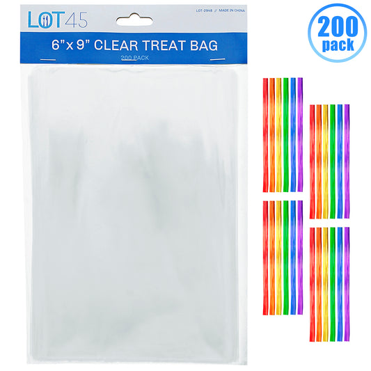 Small Clear Treat Bags with Ties Cookie Bags 6x9 IN Bakery Bag 200pk